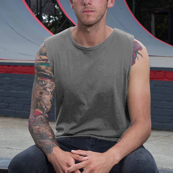 Men's Sleeveless T-Shirt Back (Charcoal Melange)